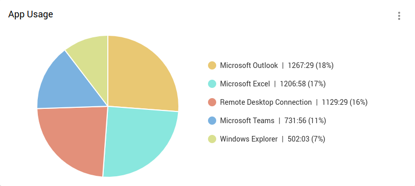 Controlio’s Categories Distribution insights break down app usage into functional categories (CRM, email, dev tools, collaboration platforms, etc.). Leaders can see: