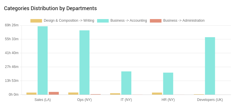 Beyond individual teams, Controlio enables cross-department comparisons through its Categories Distribution and Focus vs. Multitasking time features.