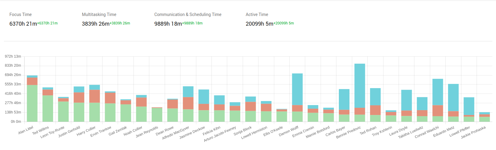 Finance teams can see how much time sales spends in CRM tools compared to admin work, or how engineering balances deep focus sessions versus multitasking across platforms.