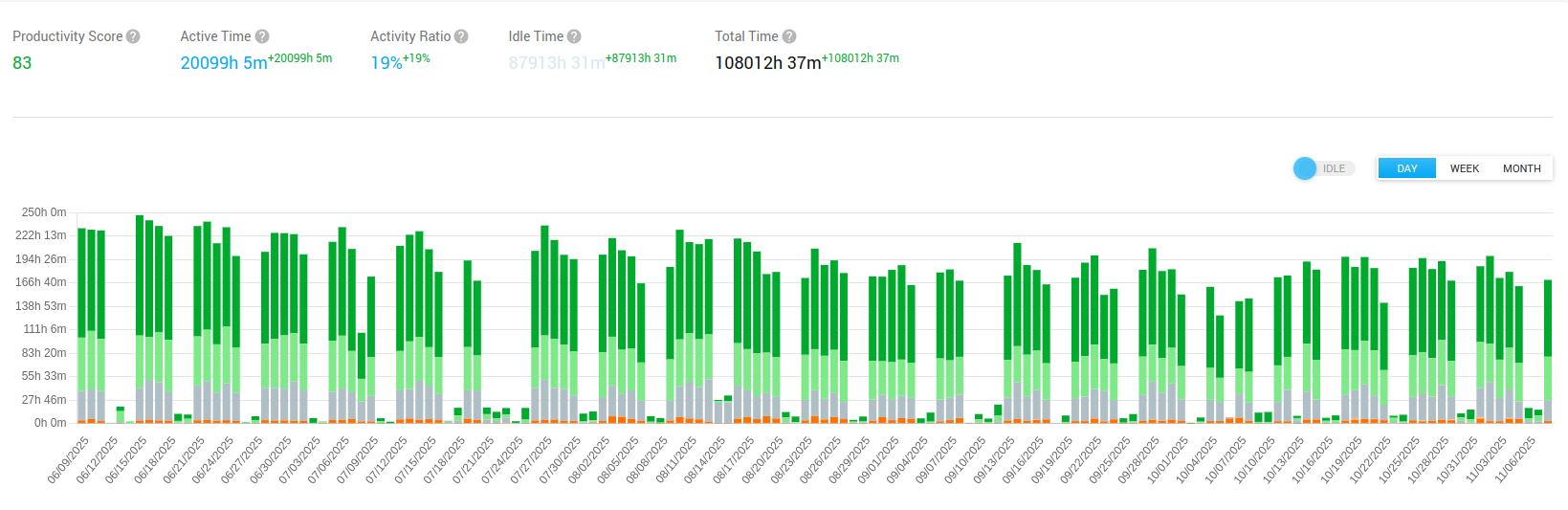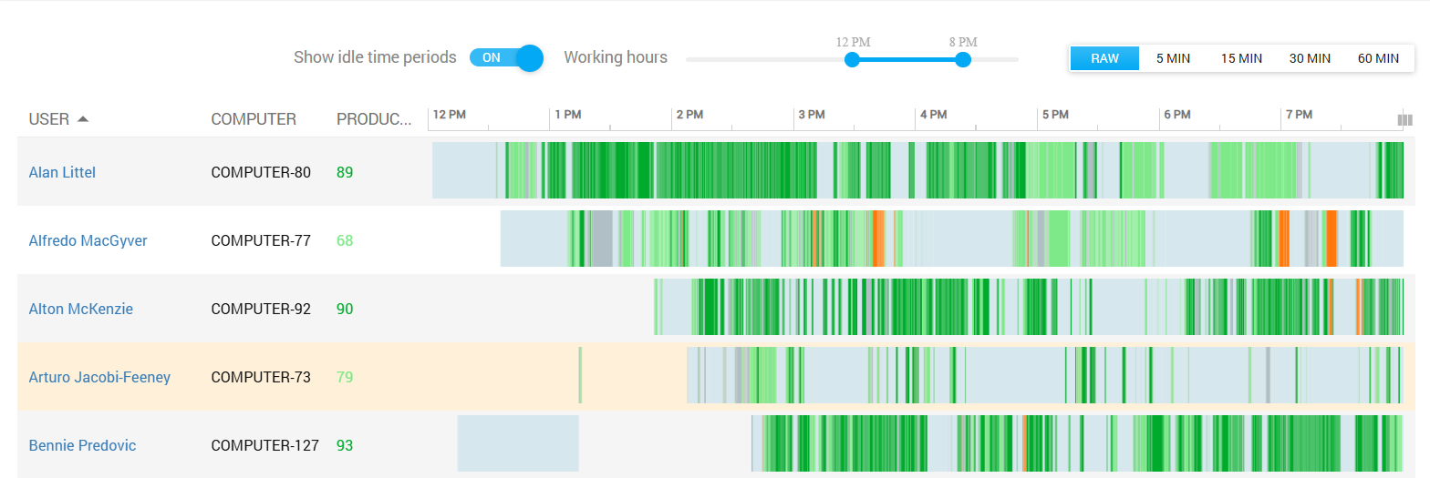 Controlio’s Workload ratios provide a precise measure of whether employees are underloaded, balanced, or overloaded compared to goal productive time.