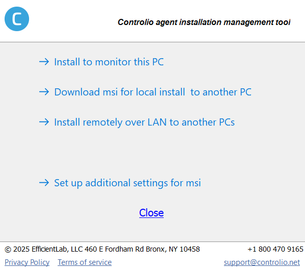 When you run the Client Launcher app, you'll be offered several ways to deploy the Controlio client agent: