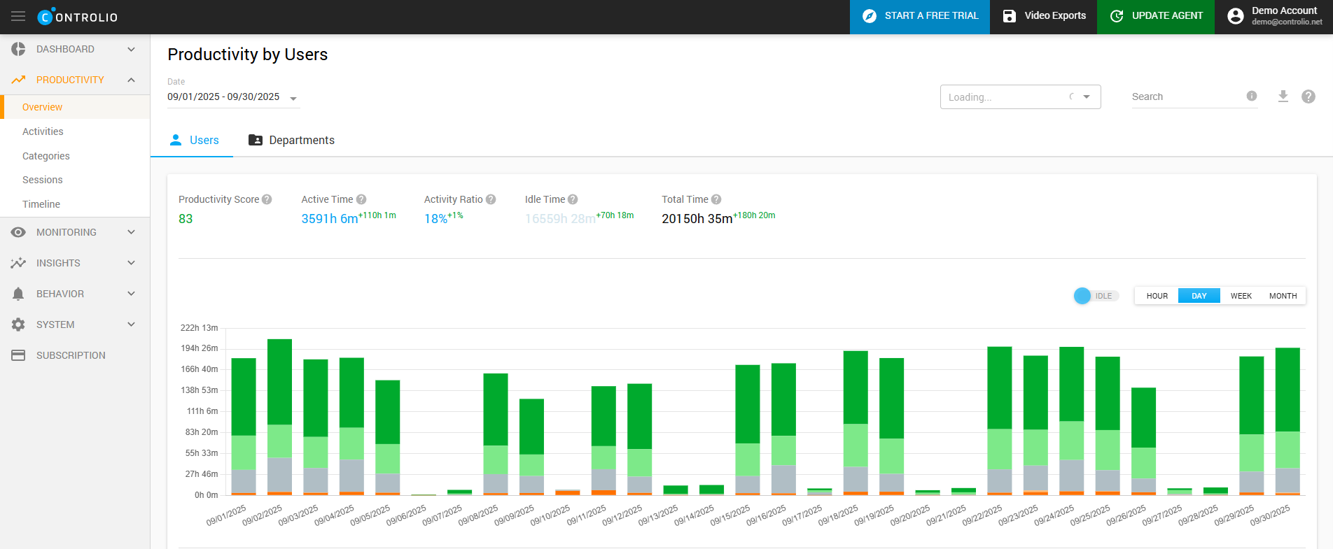 Controlio provides you with very comprehensive reports menu that help you take charge of your team’s efficiency. With this all rounded reports menu, you can pull reports about employee work activity, broken down into the various criteria potentially required by your business.