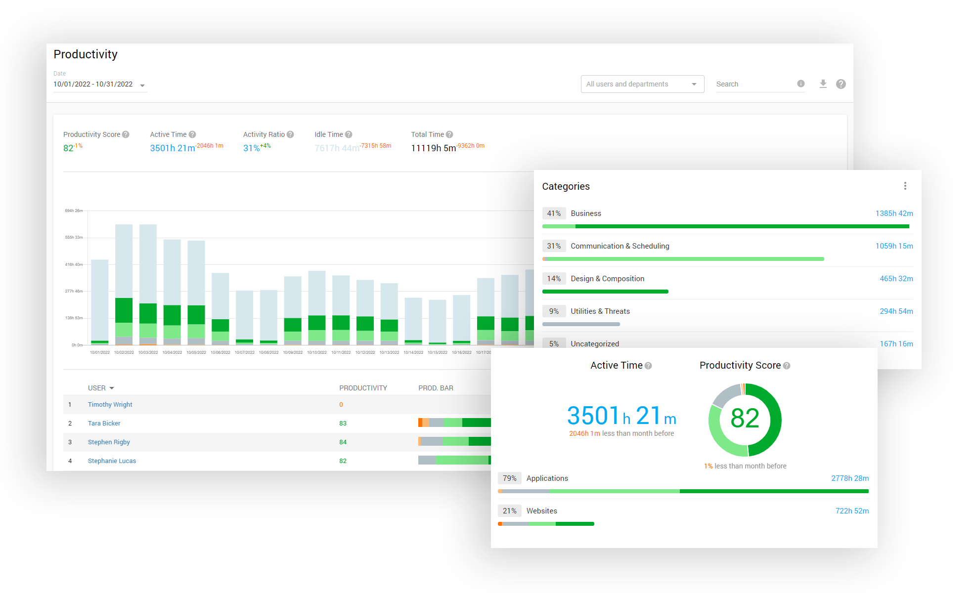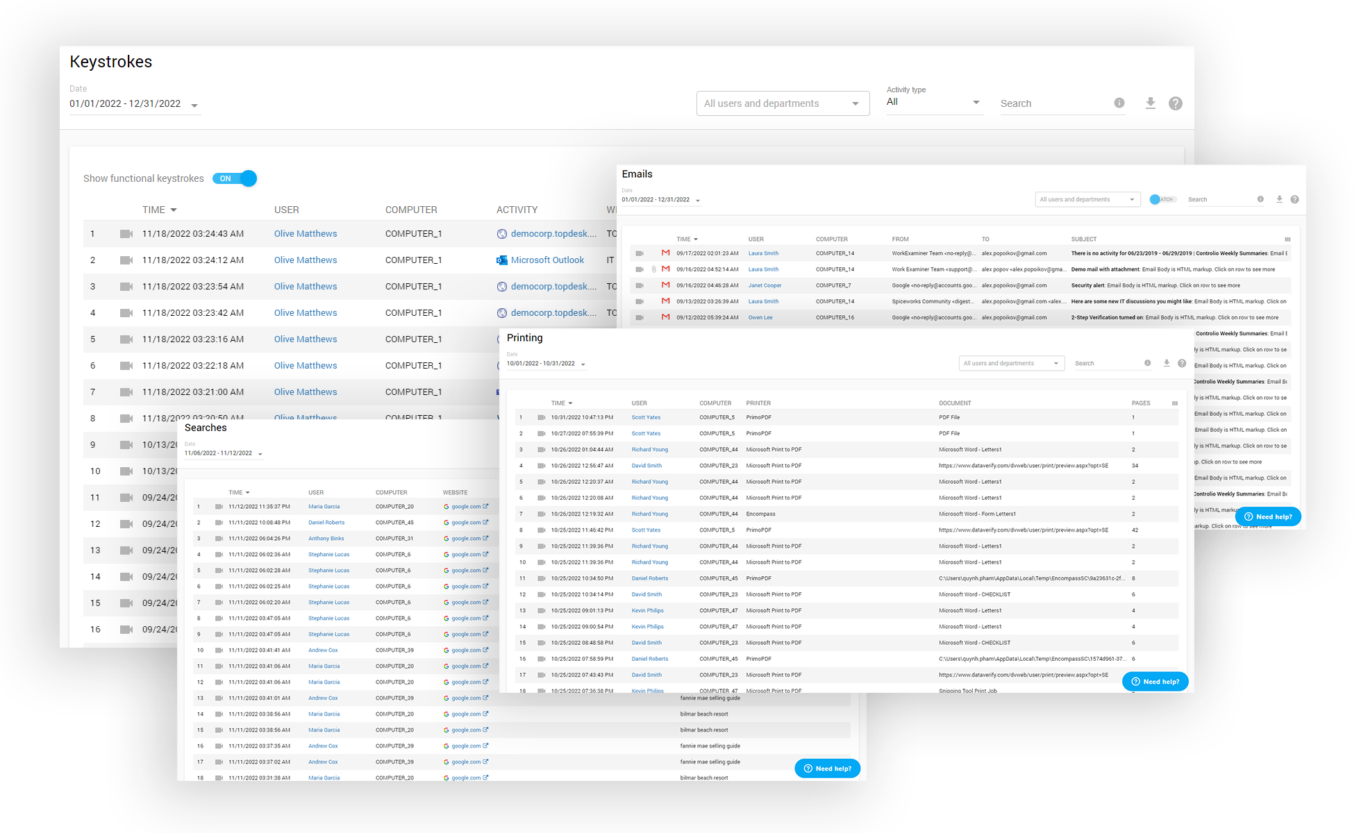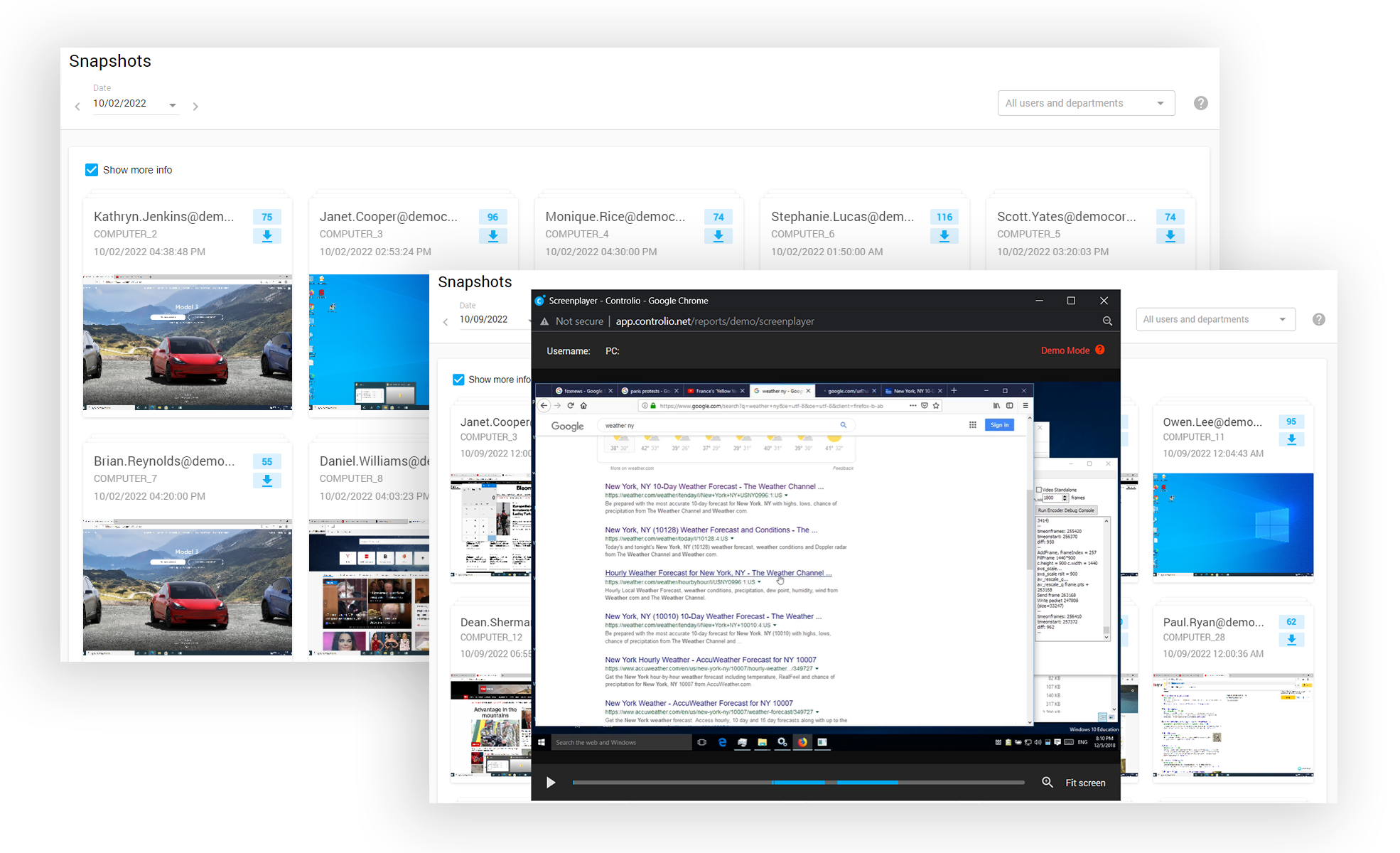 Controlio stores data locally on employees’ computers and uploads them to the Dashboard as soon as the internet connection is restored.